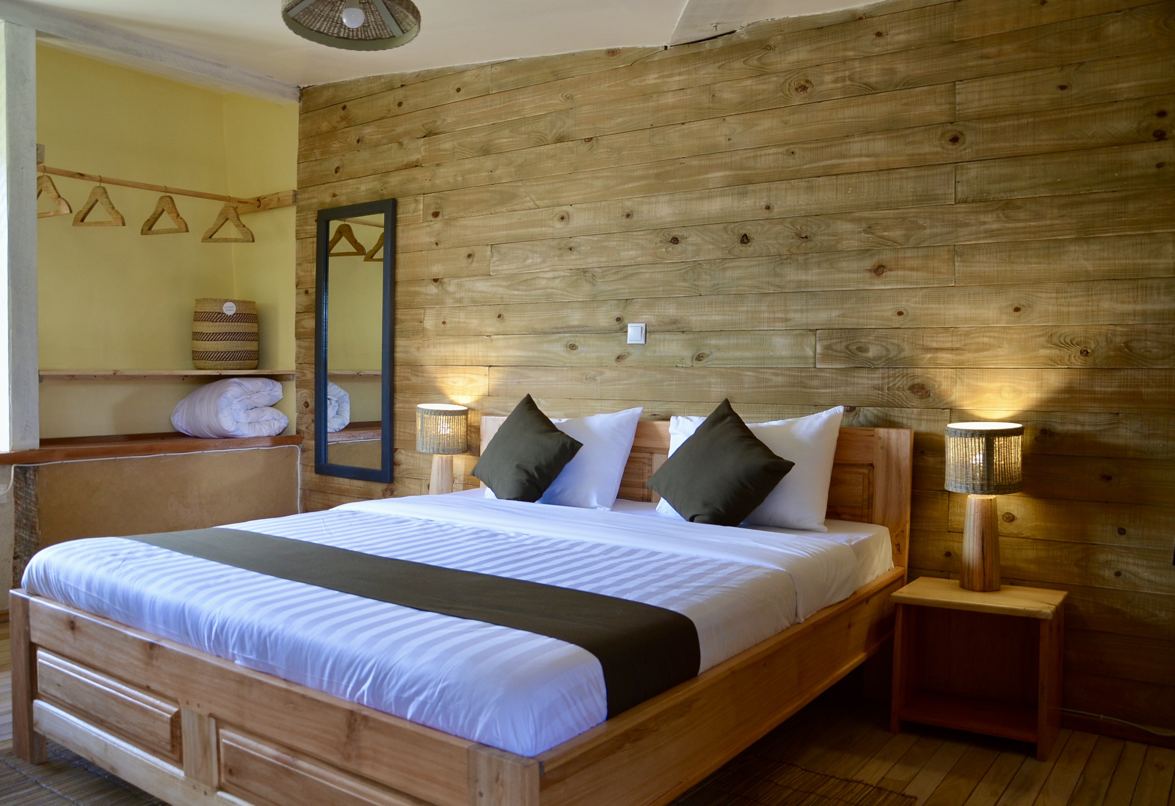 Our Executive Room is more spacious than the Economy Room, providing a more luxurious and comfortable stay. Made with locally crafted furniture and built using natural clay and wood, it offers a warm, home-like atmosphere that reflects both comfort and sustainability.